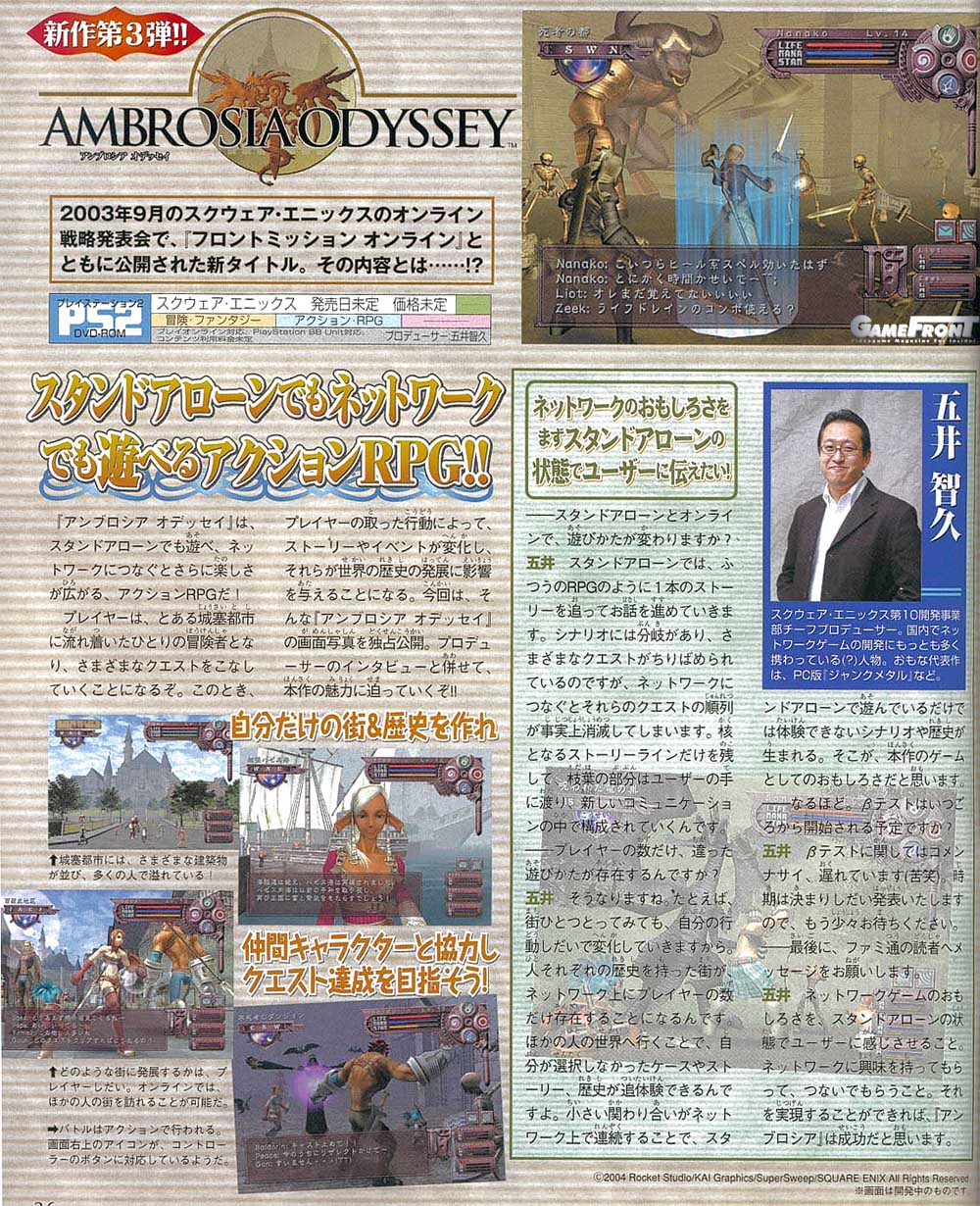 Ambrosia Odyssey är Square Enix helt nya rollspel, ett online-rollspel. Och det är inte baserat på en sen tidigare känd spelserie (Final Fantasy, Front Mission) utan en helt ny. Detta öppnar för helt unika spelsätt, karaktärer och platser som inte är bundna till en redan skapad spelvärlds universum.