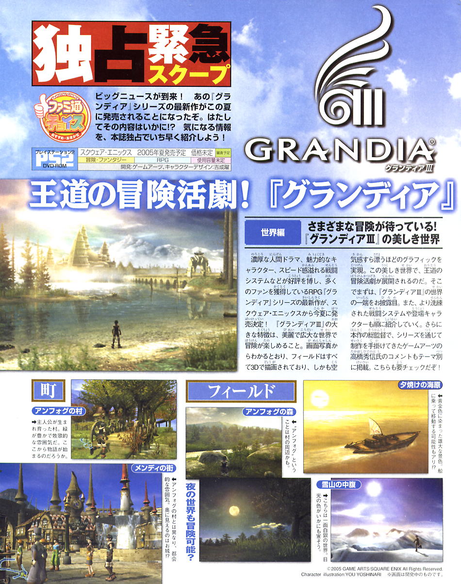 I den senaste numret av Famitsu visades två nya spel från SquareEnix upp. Båda har det skrivits om här på nyhetssidan, och det rör sig om Code Age Commanders och Grandia III. Här nedan ser ni lite scans från de båda spelen.