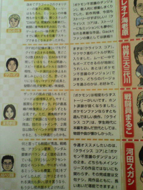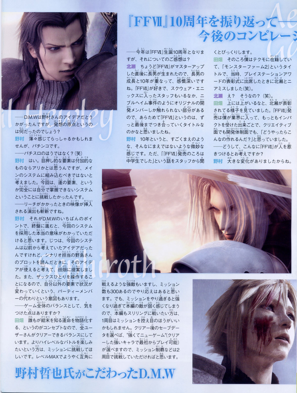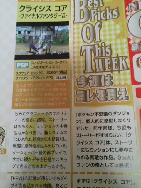 Famitsu ger spelet betyget 8.75. Tyvärr så har vi ännu inte någon översättning av recensionen och scansen är inte i den bästa kvalitén. Men så fort scans i bättre kvalité dyker upp så lovar www.crisis-core.net att en översättning kommer komma, och självklart kommer vi då dela med oss av den till er, på svenska. Men än så länge så får ni vara nöjda med att veta betyget och kolla in bilderna.
