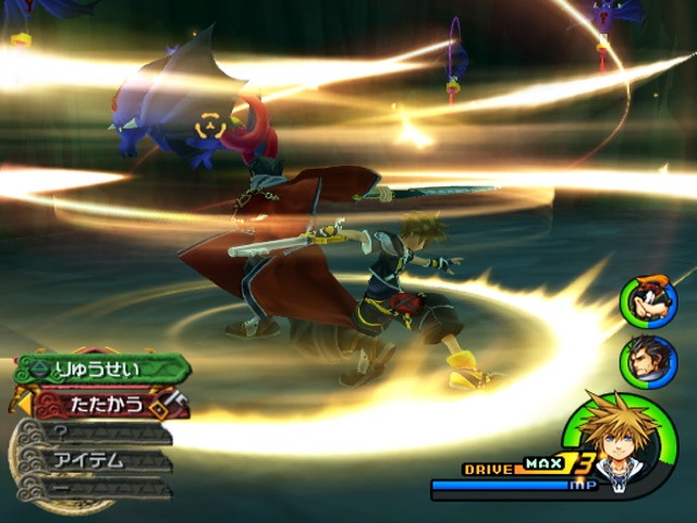 Rent grafiskt så fortsätter spelet med sin höga standard. Och trots att det minst sagt väller ut Heartless så klarar spelet av att uppdatera bilden i sin vanliga höga takt. En liten detalj att lägga märke till är att stridsmenyn ändrar sin design beroende på vilken värld man är i.