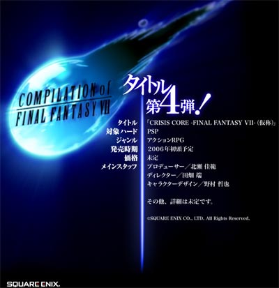 Under de senaste åren har Square Enix planerat och släppt en hel del spel och även en film (Advent Children), baserade på Final Fantasy VII. Crisis Core: Final Fantasy VII är ett av spelen som kommer, och det planeras att släppas till Sonys PSP. Nu när E3-mässan har börjat, finns en del information och även några bilder från spelet.