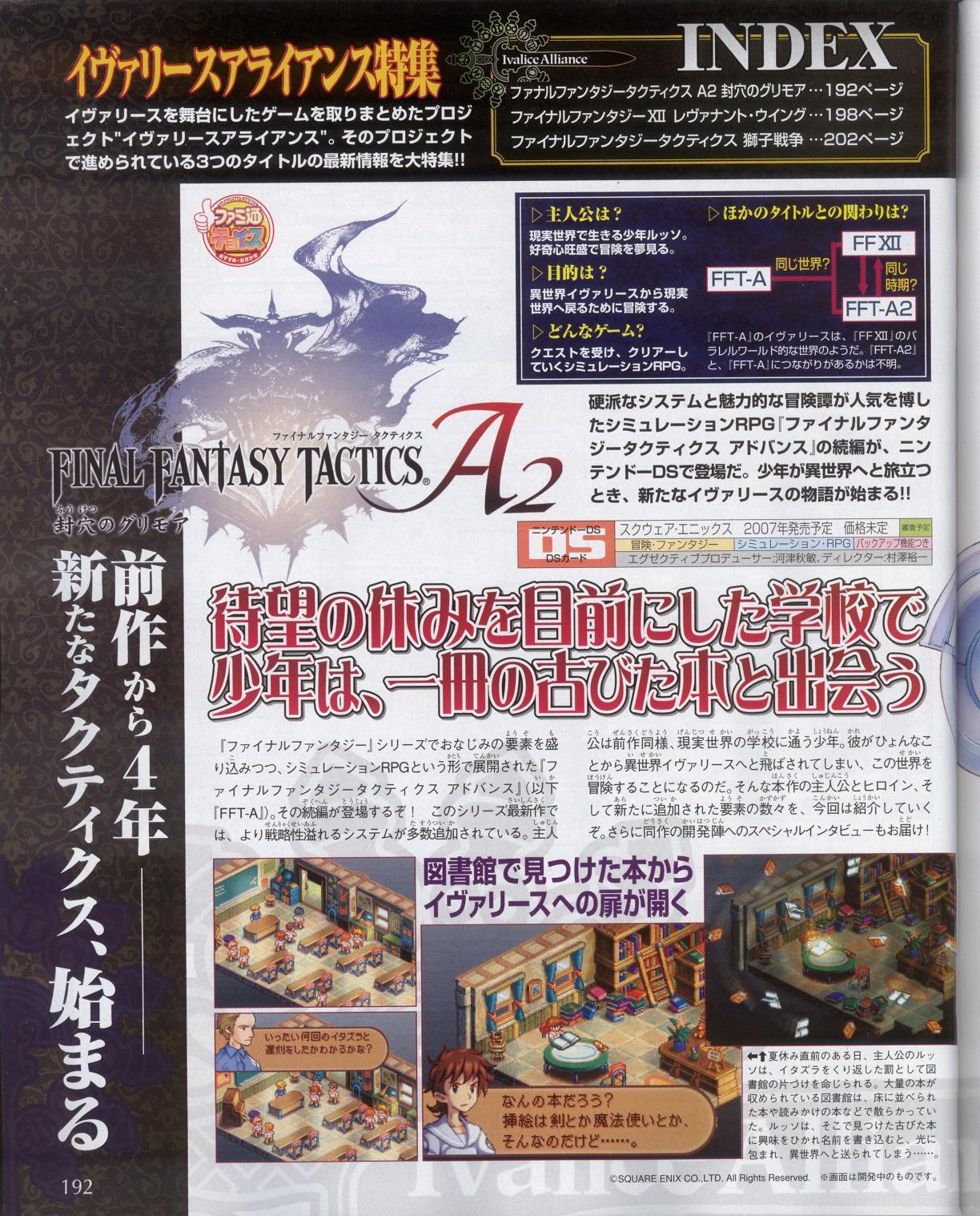 Spelet kommer att vara en direkt uppföljare på den klassiska GBA-titeln, dock kommer FFTA2: The Sealed Grimoire att släppas till Nintendo DS denna gång.