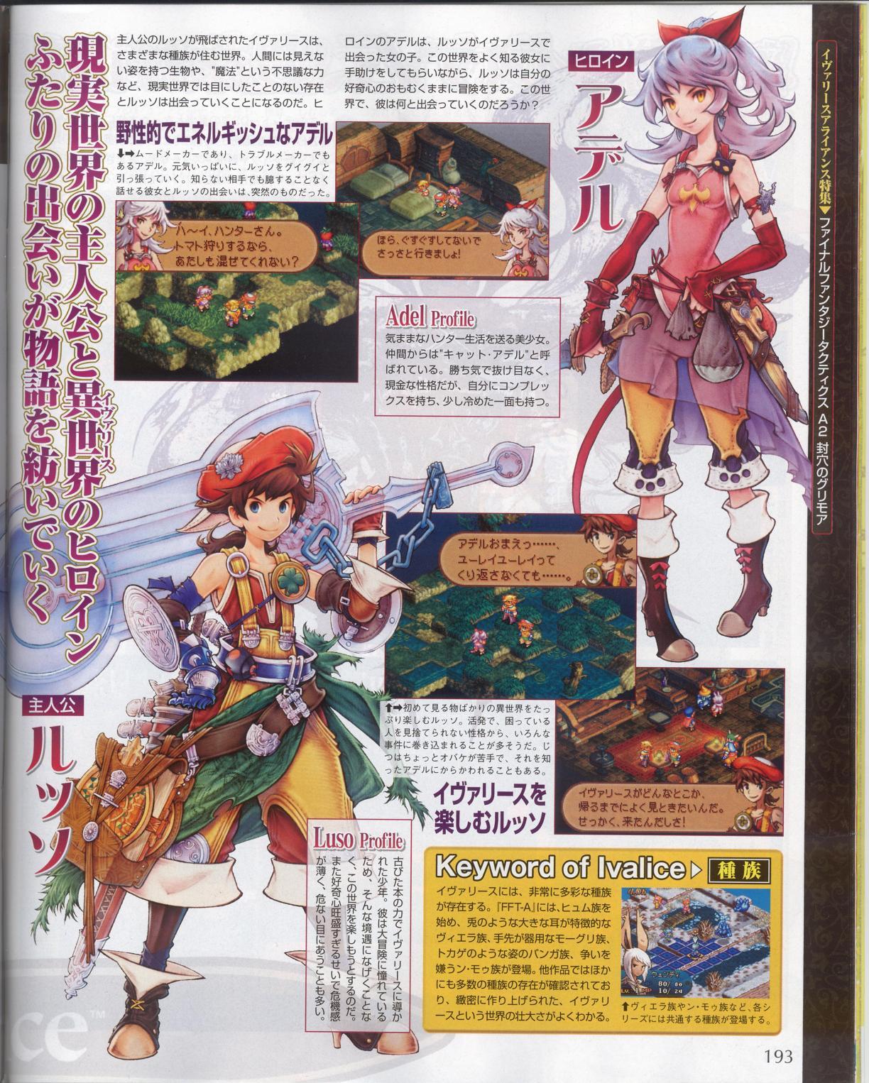 Det finns inte så mycket information angående handlingen på denna titel, mer än att den utspelar sig efter GBA-spelet (osäkert hur många år) och att de två huvudpersonerna Luso och Adel på något sätt lyckas få tag på boken från FFTA, och blir därmed teleporterade tillbaka till Ivalice värld.