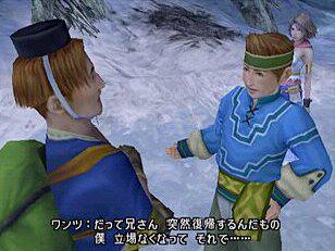 Vi börjar med 4 bilder på O’aka och Wantz som diskuterar pengaskulder i Macalania: