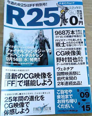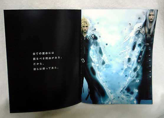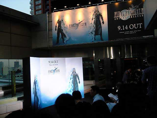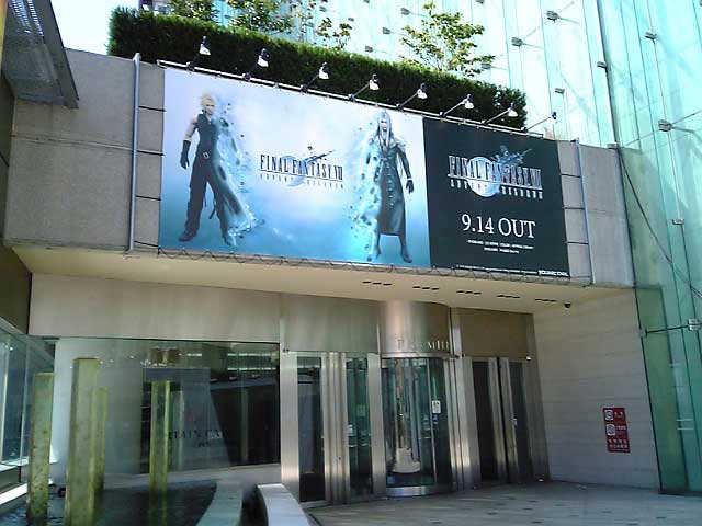 Hur som helst har vi här en mängd bilder från bion i Roppongi Hills i Tokyo. Det är bilder på bion, på röstskådespelarna, samt bilder på den broschyr alla besökare fick. Kan förtydliga att mannen på en av bilderna är Sakurai Takahiro som gör Clouds röst i Japan. Kvinnan är Itou Ayumi som gör Tifas röst i Japan.