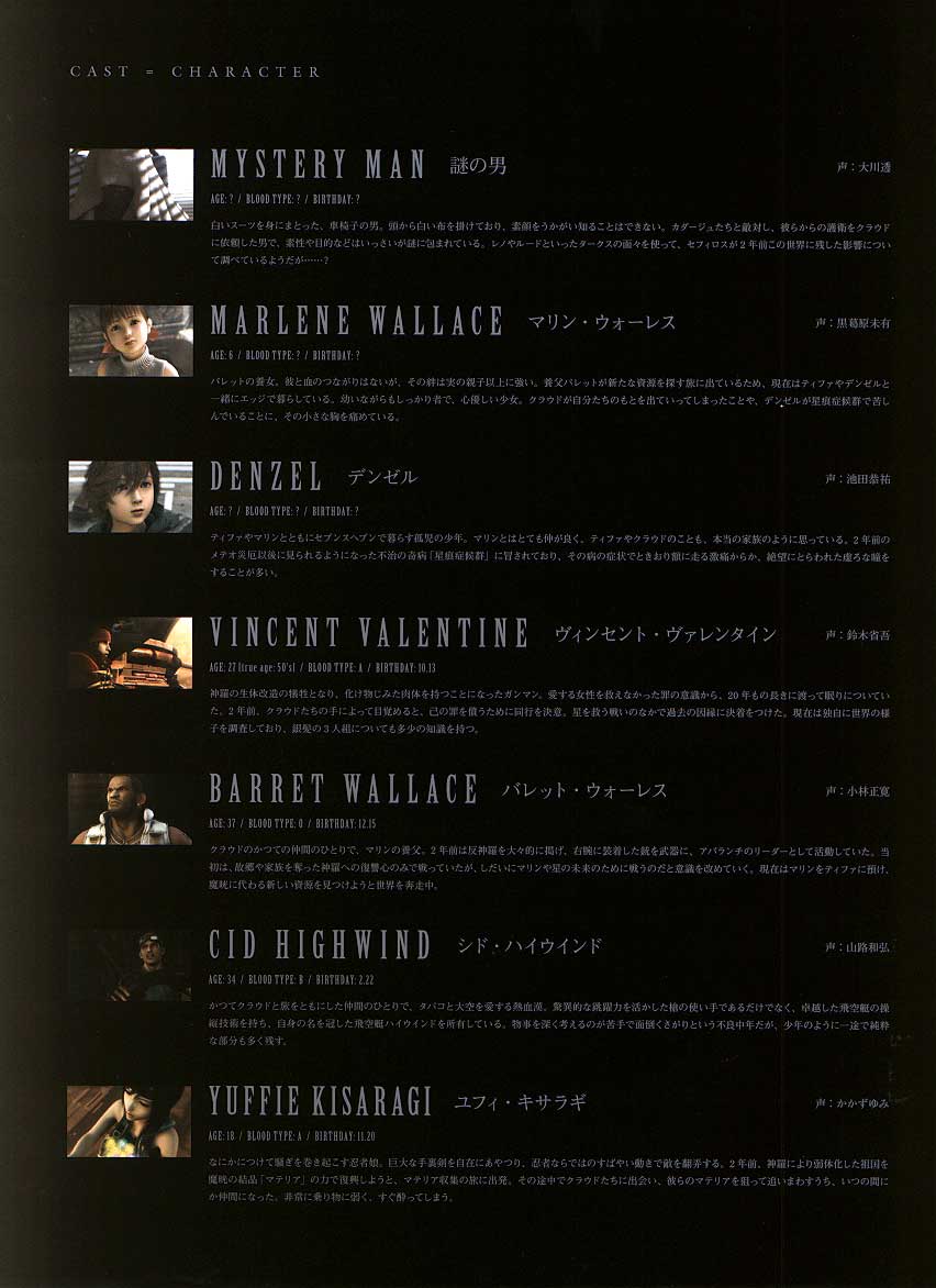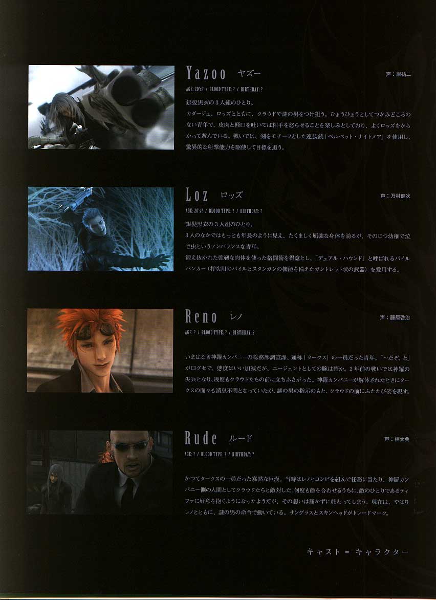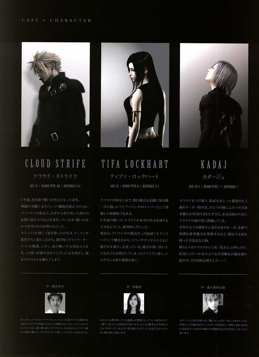Källor: www.adventchildren.net, www.ff7acreunion.co.jp, www.dengekionline.com