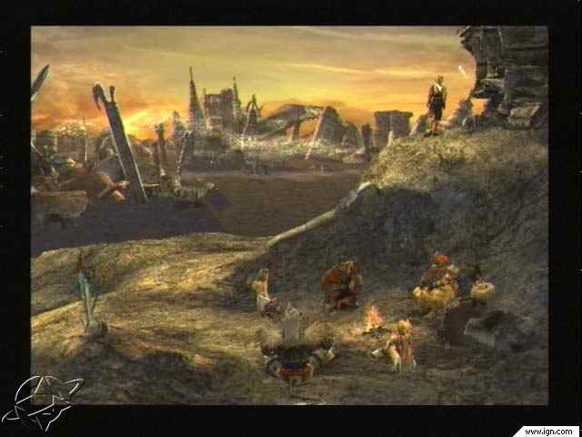 En vacker video visar en Blitzball, ett trollspö och ett svärd och går sedan över kullen där gänget sitter vid en fin liten brasa medan den otroligt vackra melodin “To Zanarkad” spelas upp. Gänget heter Wakka, Lulu, Rikku, Kimahri Renso, Yuna och Tidus. Tidus lämnar gruppen och man ser plötsligt hur lik Tidus är Squall från FF8, fast utan ett snitt längs näsan och lite olika kläder. Mycket snyggt kommer den vackra logon fram bredvid honom. (du ser den ovan) Medan filmen har varat har man dessutom fått veta vilka som har gjort spelet, och min favorit är naturligtvis Nobuo Uematsu.