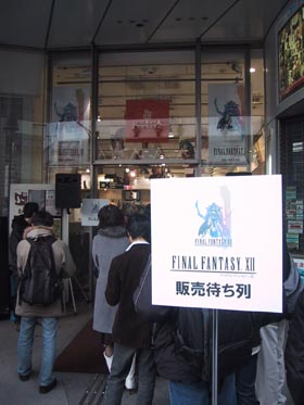 I Japan imorse vid Shibuya Tsutaya (ett köpcentra antar jag) höll man en officiell nedräkning till releasen av Final Fantasy XII. Klickan 0700 på morgonen slog portarna upp till butiken där det hett efterlängtade och långt försenade spelet såldes. Kön bestod av 60 personer (inte så jätteimponerande med tanke på hur långa köerna brukar vara) där vissa väntat sedan 1800 kvällen innan.