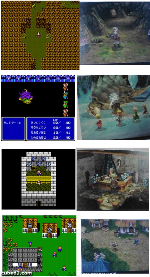 Final Fantasy III till NES var det första att introducera olika summons, som vi nu är vana vid, samt jobbsystemet. Det släpptes aldrig utanför Japan men konverteras nu om helt till Nintendo DS. Men det är inte bara en liten förbättring av grafiken som då Final Fantasy I och II gjordes om till Wonderswan Color och PlayStation I, utan man gör om hela grafiken till full 3D. För att riktigt kunna se skillnaden så har någon letat upp 3D-bildernas motsvarande 2D-platser. Känner ni igen er? Tänkte väl inte det heller.