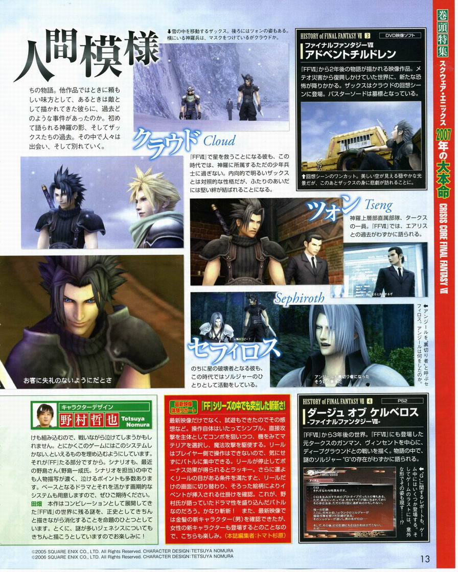 På bilderna ser vi åter Sephiroth, Aeris, Tseng och så klart Zack. Men även de nya karaktärerna Angeal och Genesis. Vi kan knappt hålla oss för att få veta mer om detta spel till PSP.