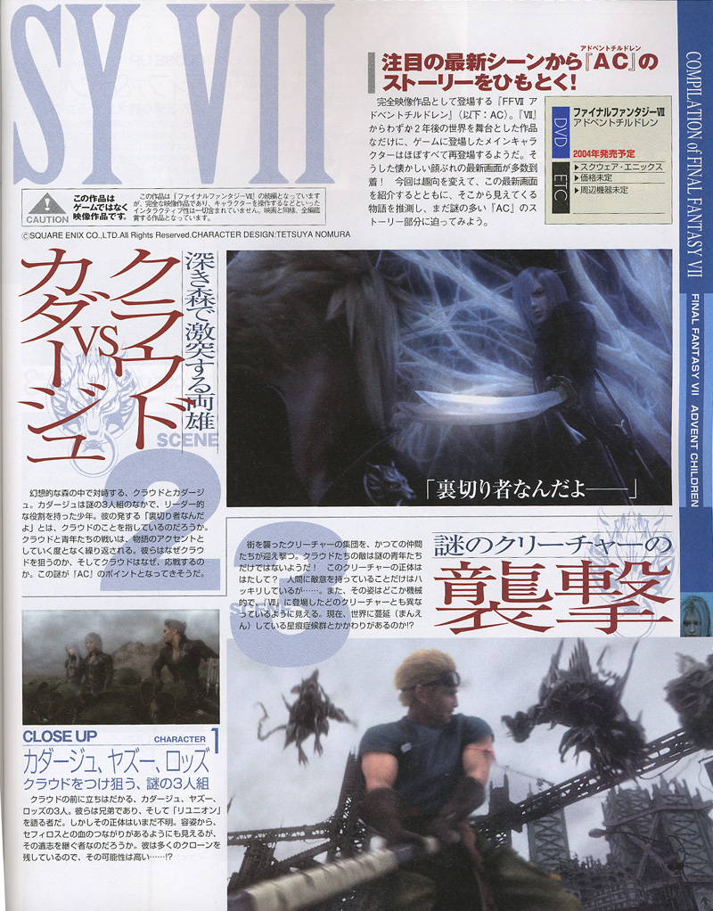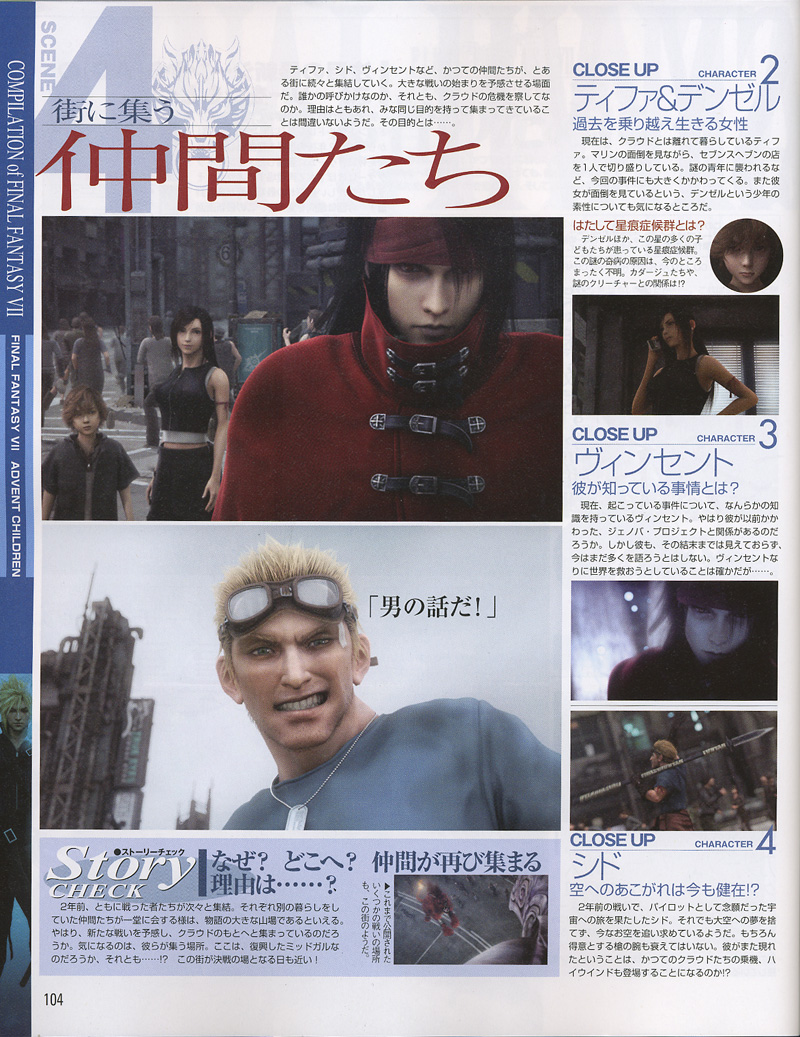För alla oss som inte kan vänta på att Final Fantasy VII: Advent Children ska släppas, kommer här fräscha scans från tidningen Deneki PS. I några av bilderna får vi se Cid som slåss mot drakliknande monster, vi får se Vincent i en närbild när han går på torget och mycket annat. En av de mer intressanta bilderna är Cloud som håller i Tifa. Det verkar som om de befinner sig i kyrkan där Aeris plockade blommor. Något annat spännande är Kadaj som riktar något sorts svärd, troligen mot Cloud. Vart de befinner sig, är fortfarande osäkert. Ni kan se dessa scans nedan, enjoy!
