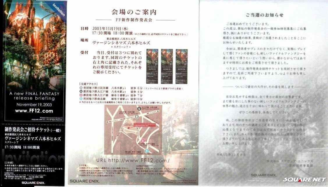 Imorgon smäller det i biosalongen Virgin Cinema i Ropongi Hills, Tokyo. Det är nämligen platsen där Square Enix ska hålla sin FFXII-konferens. Platsen bäddar ju för en otrolig inledning i form av en storslagen trailer som visar upp Final Fantasy XII i all dess visuella prakt. Detta följs upp med info om några av huvudkaraktärerna och spelets handling. Det skulle vara en dröm att få delta, men vi får väl nöja oss med att följa all info och media som strömmar ut på internet under de följande dagarna.