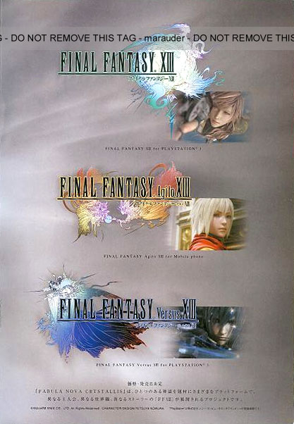 I FFXIII så avslöjas det att kvinnan vi sett i trailern kallas “The Lightning” och ska vara utvald av ljusets kristall. Spelet ska vara mer än 13% färdigt (uträknat i november). Versus-spelet är bara färdigt till 1,3% enligt siffror från november.