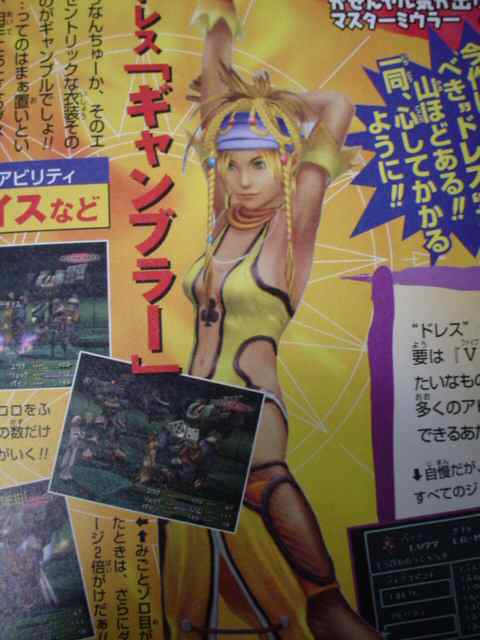 Den Japanska hemsidan Quiter har nu scannat in en ny bild på Rikku som är tagen från den Japanska tidningen V Jump. På denna bilden så ser hon ut att ha andra kläder på sig än på dem bilderna man har sett innan. Man kanske kan byta mellan massor av klädesplagg i spelet, vem vet? Man kan ju alltid hoppas.