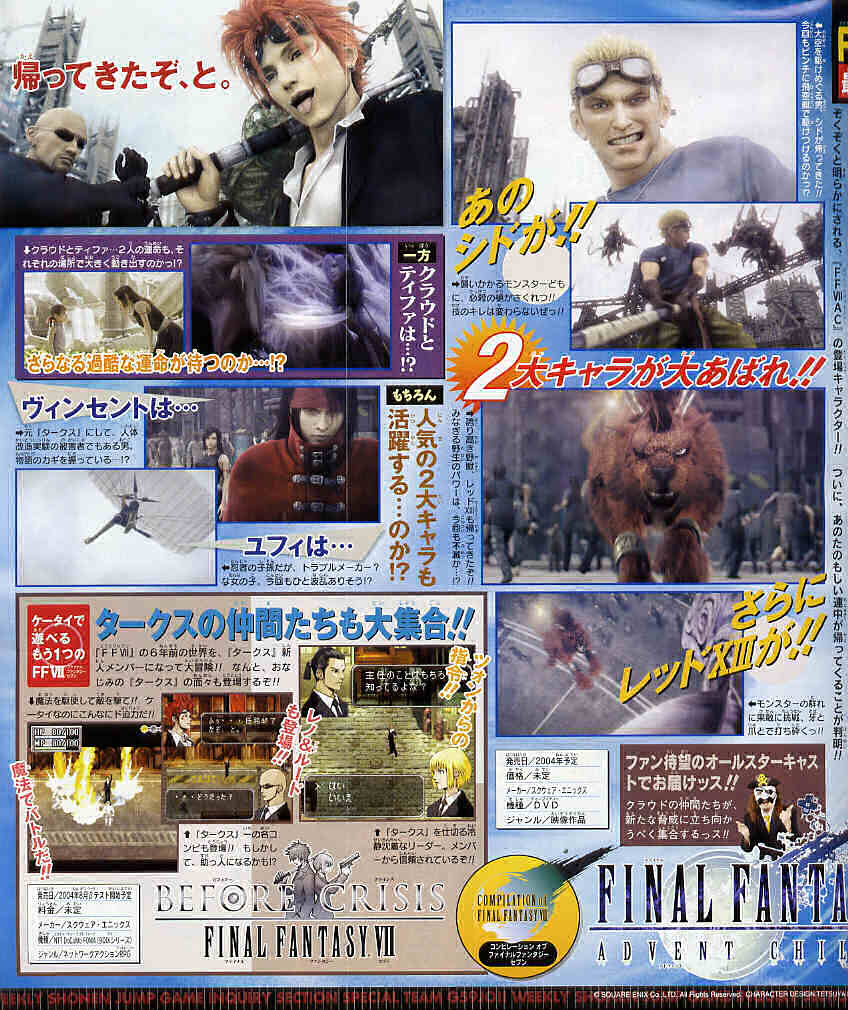 Nu är V Jump igång igen! I veckans nummer har dem visat nya, intressanta bilder. Man får nu se Cid “in action”, en bild som vi tidigare sett på Red XIII fast nu större och i bättre kvalité, en ny bild på Red XIII och en bild på Yuffie in game!