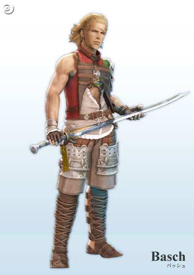 Basch verkar byta kläder rätt ofta. Vi har här tre bilder på honom och på alla har han annorlunda klädsel. Troligen för att han som soldat har rustning som han inte använder privat. Rätt logiskt faktiskt, dock håller inte plåtnicklas Steiner från FFIX med eftersom han springer runt i sin konservburk dygnet runt. Klicka på bilderna för att se en större version + hela hans klädsel.
