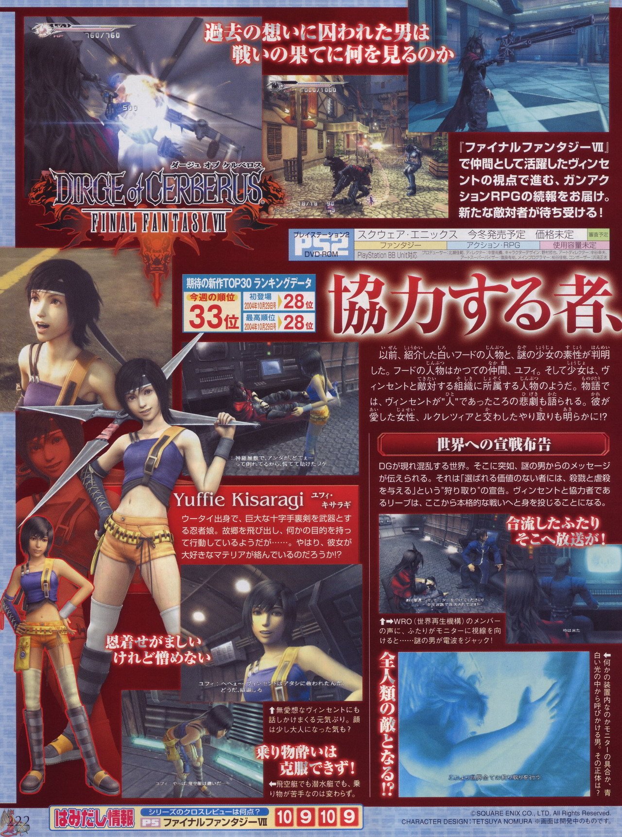 Två nya scans har som sagt var nått oss. Vi får se ett par bilder på Yuffie, och även ett par bilder på en kvinnlig karaktär vid namn Shelke, och hennes vapen verkar inte så lite inspirerade av Star Wars filmernas gamle hederliga Ljussablar.