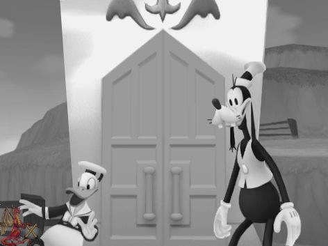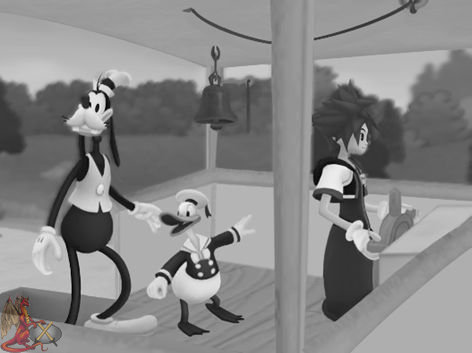 Som sagt, hela 29 bilder. Snart får Square Enix och Disney ge sig och helt enkelt släppa spelet, oavsett om det är klart eller inte, för nu börjar det bli ruggigt intressant. Alla känner säkert igen den klassiska Disneyfilmen “Ångbåts Willie” (Steamboat Willie), och nu kommer vi att få se den i Kingdom Hearts 2 format. Självklart svartvitt, precis som originalfilmen, för att inte glömma att Kalle och Långben återfår sina forna 40-tals utseende, och för att matcha det så får även Sora sin alldeles egna 40-tals Disney look.