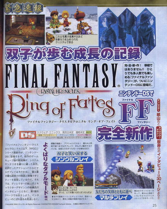 Final Fantasy Crystal Chronicles: Ring of Fates utvecklas just nu till Nintendo DS för en release under 2007. Square Enix lovar att de har bättrat sig och gjort spelet mer storydrivet än sin föregångare. Det finns dessutom ett multiplayer-läge (inget online-läge) för upp till fyra spelare där man får välja ras, som i det första spelet, men hur detta läge i övrigt ska fungera är okänt. Utvecklingsteamet ska vara till 60 % färdiga med spelet och sikta på en release till sommaren.