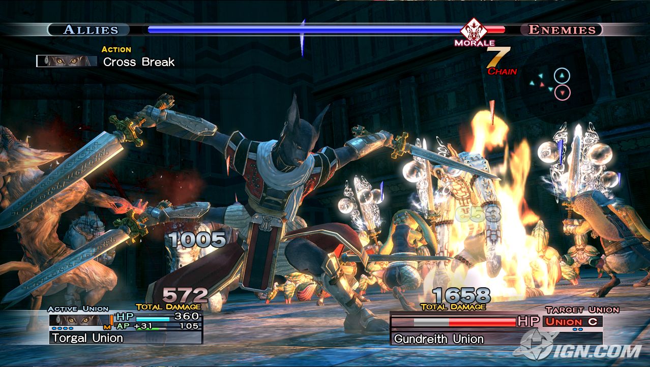 Striderna kommer se lite annorlunda ut från dem klassiska RPG-spelen. Man kommer att kontrollera en egen styrka av soldater av olika folkslag (vad som avgör när och varför det blir ett nytt folkslag vet jag inte) och strida mot en liten styrka av fiendesoldater/monster. Under stridens gång är det sedan möjligt för båda sidor att kalla in förstärkningar. Man får även under stridens gång upp textmeddelanden som talar om hur bra din styrka samarbetar, och i och med detta så kan man nog anta att man, om ens styrka inte samarbetar tillräckligt bra, kan byta ur folk från den.