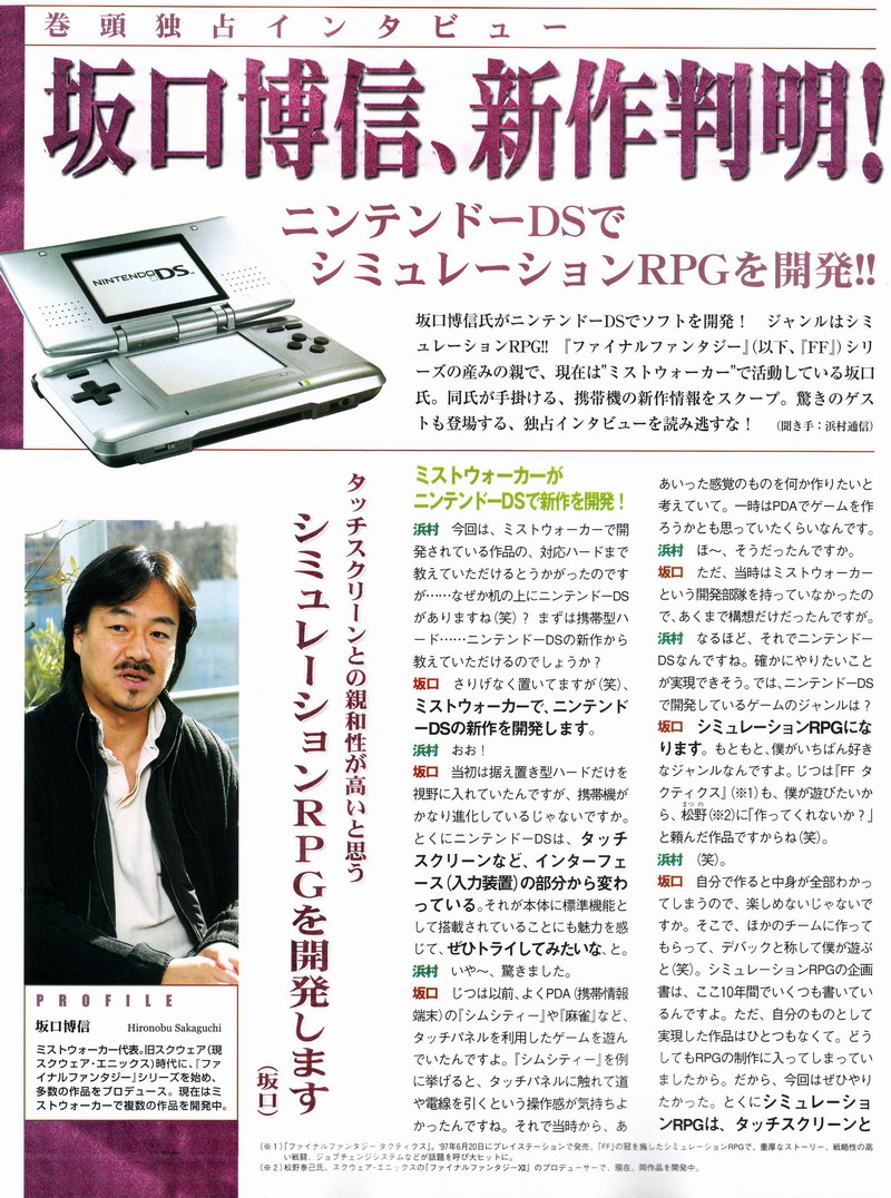 Här nedan hittar ni scans och bilder från intervjun. Titta gärna in på länken, där det troligen ska finnas en kort videointervju med Sakaguchi.
